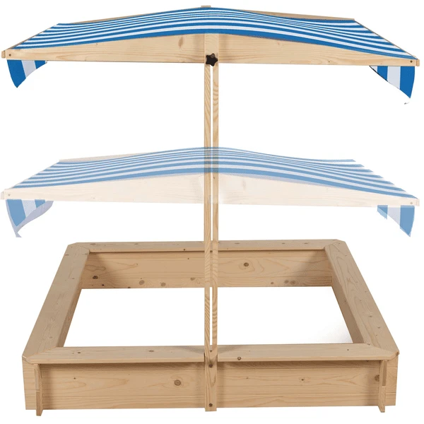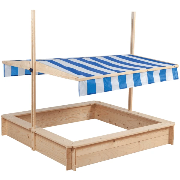 Zelfs op zeer zonnige dagen kun je uren spelen in je mooie Sand box. Het dak beschermt u tegen de hete zon en zorgt voor koele schaduw.