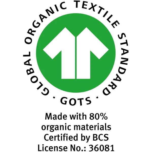 - Materiaal bovenzijde: Terry Dot 80 % biologisch katoen GOTS, 20 % polyester